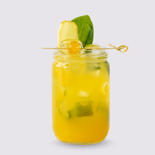 Fresh basil, cucumber, ginger, passionfruit, fresh lemon, and ginger ale.
