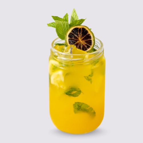 Fresh mint, passion fruit, fresh lemon and soda water.