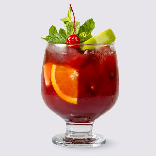 Wild cherry, pomegranate, orange juice and fresh fruits.